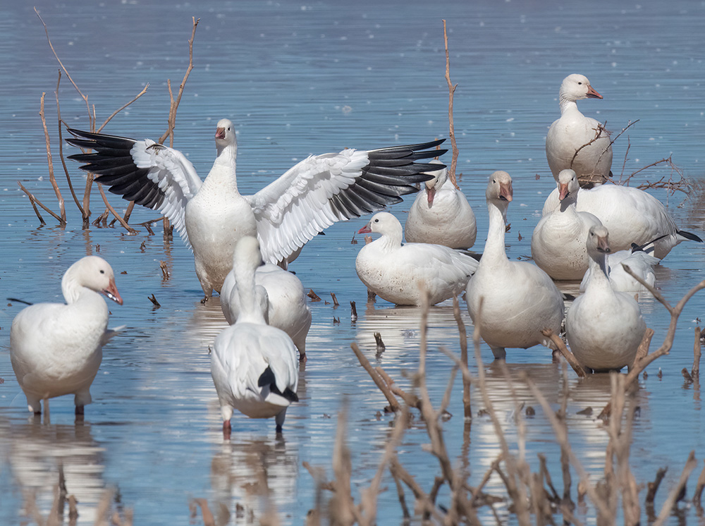 Arizona hosts several goose species, most notably the native Canada Goose, along with spectacular winter visitors such as Snow and Ross’s Geese. Beginning in October, migrating flocks descend on the state’s reservoirs, wetlands, and flood-irrigated agricultural fields to feed on grains, grasses, and aquatic vegetation. Over the past few decades, the Canada Goose has transitioned from a scarce winter visitor to an increasingly common resident, nesting along urban lake shores and river corridors from Phoenix northward. Snow Geese, including both white and blue-morph individuals, can number in the tens of thousands on the Colorado River’s marshes near Yuma, while the pint-sized Ross’s Goose occasionally joins these gatherings. By early spring, most geese depart for Arctic and subarctic breeding grounds, underscoring Arizona’s vital role as a winter refuge for these charismatic waterfowl.