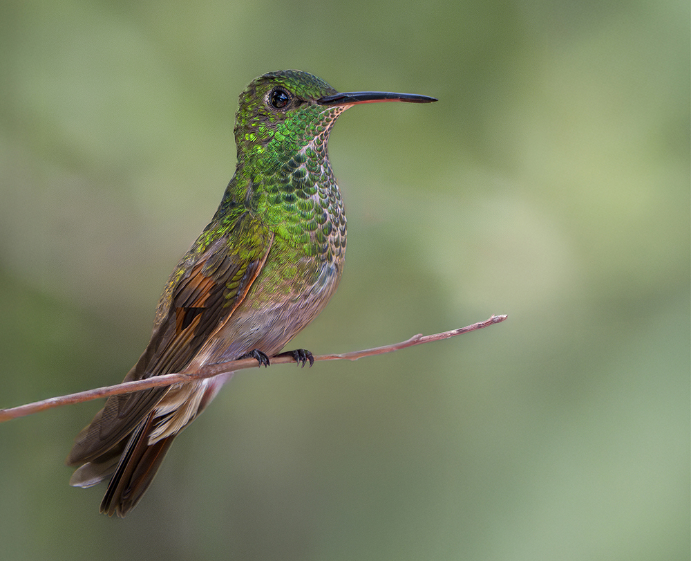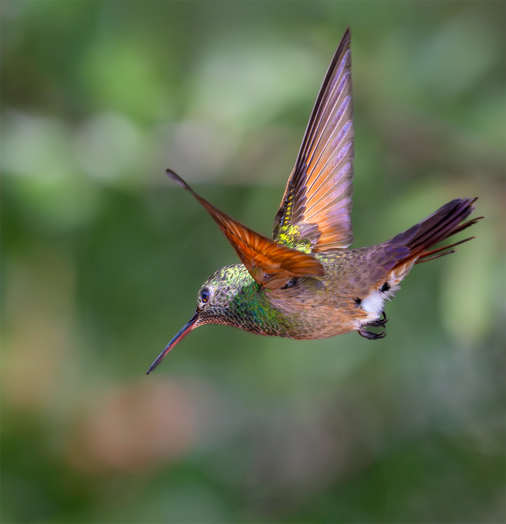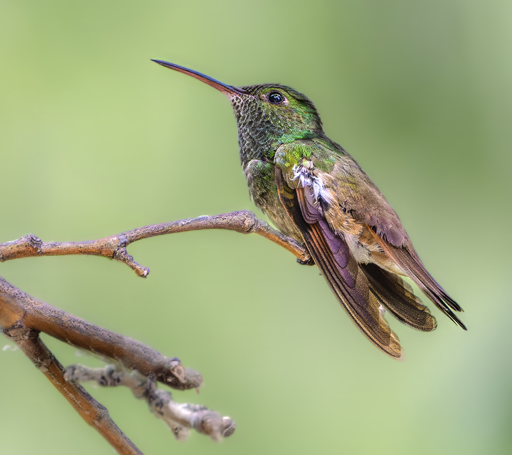 The Berylline Hummingbird is a medium-sized Mexican species that, since the early 2000s, has become an uncommon but increasingly regular summer visitor—and even occasional breeder—in southeastern Arizona, chiefly around Patagonia, Madera Canyon and nearby riparian woodlands. Adults display bright metallic green upperparts, pale grayish underparts and a slightly decurved bill with a dark tip. They typically arrive in late spring (May) and remain through early fall (September), frequenting sycamore and cottonwoods as well as backyard feeders. First confirmed nesting in Arizona around 2019, the Berylline Hummingbird has quickly become one of the state’s most sought-after “new” species for birders.