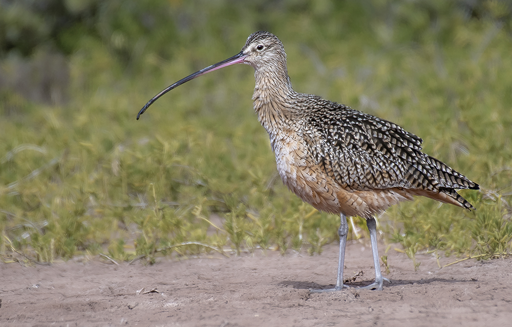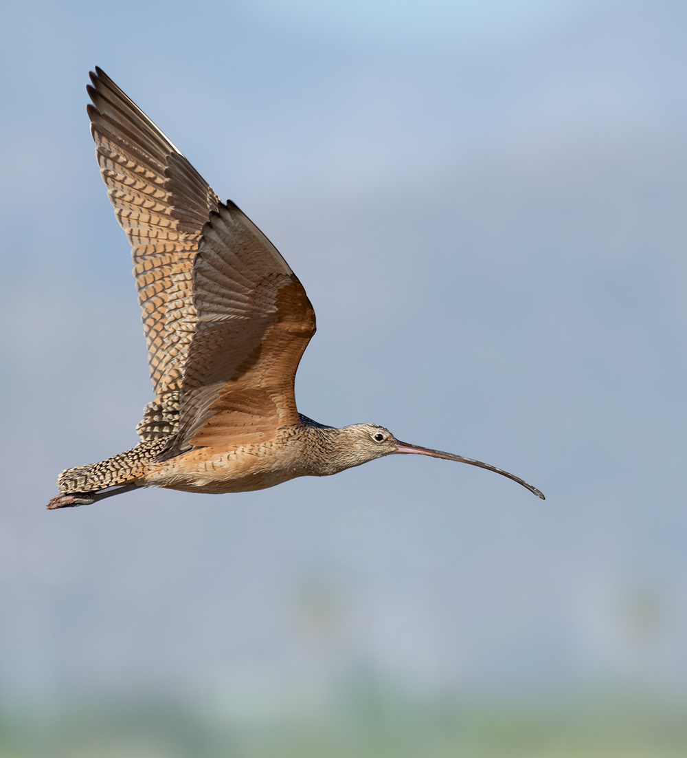 In Arizona, long-billed curlews are primarily winter visitors (October–March), forming small flocks in grassy meadows, flooded fields, mud flats, and pond edges, where they use their long bills to forage for crustaceans, mollusks, and insects. Breeding occurs farther north and west, and summer records in Arizona are rare.