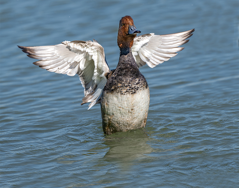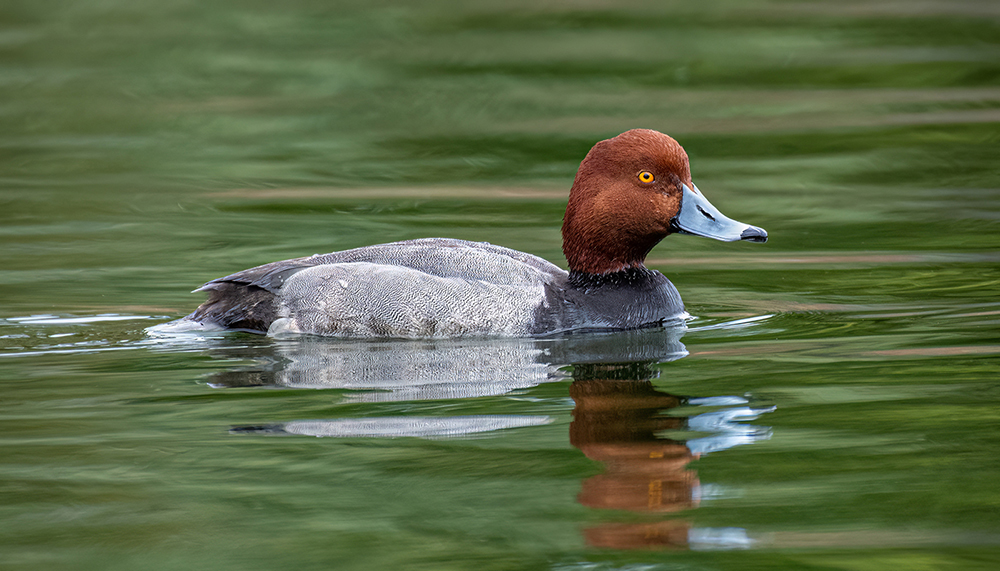 The Redhead is a medium-sized diving duck that appears regularly in Arizona during migration and winter. Adult males sport a rounded, cinnamon-red head, black breast and tail, and pale gray body, while females are more subdued, with warm brown plumage. These ducks congregate in freshwater lakes, marshes, and reservoirs—from Alamo Lake and the San Simon marshes in the east to the Lower Colorado River and Saguaro and Roosevelt lakes in central Arizona—where they feed by diving for submerged vegetation (especially pondweeds) and aquatic invertebrates. Peak numbers occur November through March, although a few may linger into early spring. Breeding is exceptionally rare within the state, making their winter flocks a highlight for Arizona waterfowl enthusiasts.